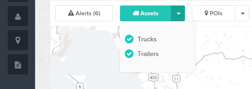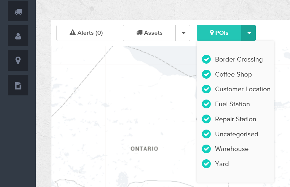 - You can filter your POIs by selecting the Assets tab and disabling or enabling the assets you want to view on the map or Asset List.