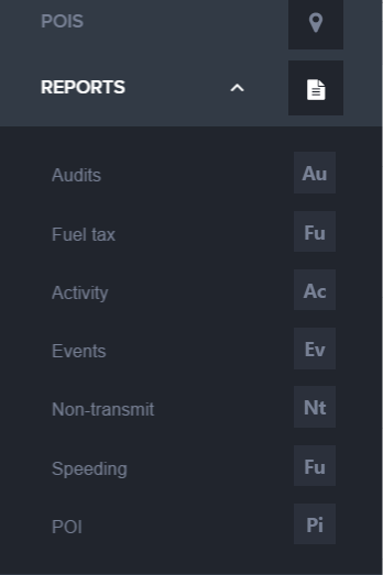 - You can navigate to Dashboard, Assets, POI, Drivers, Activity and Reports. On selecting Reports, you can view a further breakdown of the reports that are available.